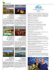 nad jeziorami Nowości Perły dermatologii nad morzem rekomendacja Nowości Hotel Willa Port Afrodyta Marena Hotel Lubicz **** Mera Dworek SPA Conference Resort&SPA SPA & Wellness Resort Wellness & SPA Wellness & SPA SPA Hotel Osada Wędrowca Stowarzyszenie Lekarzy Dermatologów Estetycznych po raz dziesiąty ogłosiło laureatów konkursu „Perły Dermatologii ul. Mickiewicza 17 ul. Grunwaldzka 46 Estetycznej” – preparatów docenianych i polecanych przez ul. Szkolna 23, Mechelinki ul. Turystyczna 1 14-100 Ostróda 69-220 Ośno Lubuskie 72-415 Międzywodzie ul. Grunwaldzka 14 ul. Bitwy pod Płowcami 59 81-198 Kosakowo k/Gdyni tel.: +48 89 642 46 00 tel.: +95 757 62 81 lekarzy dermatologów. Więcej informacji w dziale Wydarzenia. tel.: +48 91 381 38 93 76-270 Ustka 81-731 Sopot tel.: +48 600 290 190 fax: +48 89 642 47 99 fax: + 95 757 54 56 tel.: +48 59 814 31 02 tel.: +48 58 766 60 00 tel.: +48 58 351 14 72 fax: +48 91 886 19 44 www.willaport.pl rezerwacje@afrodyta-spa.pl Najlepszy preparat do peelingu rezerwacja@marenaspa.pl fax: +48 59 814 33 00 fax: +48 58 766 60 01 osada@osadawedrowca.pl www.facebook.com/WillaPort www.afrodyta-spa.pl Cosmelan / Bio-Profil Polska reservation@hotel-lubicz.pl spa@meraspahotel.pl www.osadawedrowca.pl www.marenaspa.pl www.hotel-lubicz.pl www.meraspahotel.pl Willa Port to hotel położony na Ma- Ekskluzywne i urokliwe SPA, w któ- Najlepszy preparat do mezoterapii Wyjątkowe miejsce dla Twojej rodziny To luksusowy kompleks położony nie- Nowoczesny i niepowtarzalny hotel, Ciche, magiczne miejsce, położone zurach, nad samym brzegiem jeziora. rym odnajdziesz atmosferę spokoju Aquashine BR / Antiaging Institute i kontrahentów! Plaża i bezkres Bał- opodal pięknej, piaszczystej plaży w usytuowany tuż przy plaży w Sopo- przy nadmorskim klifie, z którego Dysponujemy 113 obszernymi po- i zmysłowości. Zabiegi Thalgo i Ella tyku, pachnący i soczyście zielony las Ustce, jednej z najurokliwszych miej- cie. Oferuje 145 pokoi z widokiem na w ciągu kilku minut można dotrzeć kojami, dwiema restauracjami oraz Bache, rytuały ajurwedyjskie. Tera- Najlepszy preparat do modelowania twarzy sosnowy tuż za oknem – to nasze atu- scowości na Wybrzeżu. 55 komfor- morze. Strefa SPA&Wellness składa się do wszystkich atrakcji Trójmiasta. jednym z najlepszych SPA w regionie. peuci z Tajlandii, Bali, Indii, Filipin ty. Do dyspozycji oddajemy 80 pokoi, towych pokoi, restauracja serwująca z 35 pokoi zabiegowych, 4 basenów, Testy nietolerancji pokarmowej, poby- Nasz obiekt to także idealne miejsce i Ukrainy. Dieta doktora Bardadyna. Juvederm Voluma with Lidocaine / Allergan Mare Spa, Strefę Aqua. Dla dzieci: Kącik potrawy kuchni polskiej, kryty basen, w tym jedynego na Wybrzeżu, otwar- ty rehabilitacyjne, zabiegi SPA&natura. do organizacji konferencji, szkoleń To idealna oferta dla osób zmęczo- Urwisa i plac zabaw. Dla gości bizneso- centrum wellness&SPA. tego basenu na hotelowym dachu. Przywracamy zdrowie, odchudzamy i bankietów. nych, szukających ukojenia i odrobi- Najlepszy preparat do rewitalizacji czerwieni wargowej wych: 3 sale konferencyjne. skutecznie! ny luksusu. StylAge Special Lips Lido / Laboratorium Estetyki Lea Vivacy Głęboczek Hotel Warszawianka Najlepszy produkt do rewitalizacji okolicy oka Interferie RRS HA eyes / Laboratorium Estetyki Lea Vivacy Vine Resort&SPA Centrum Kongresowe Wellness&SPA Medical SPA **** Najlepszy produkt do niechirurgicznego liftingu Nici Happy Lift / Croma-Pharma Zabieg roku 2014 Karboksyterapia CDT w terapii łączonej z autologicznym osoczem bogatopłytkowym / Beauty Derm Aesthetic Najlepszy dermokosmetyk przeciwsłoneczny Anthelios XL / La Roche-Posay Wielki Głęboczek 1 Jachranka 77 Najlepszy dermokosmetyk do pielęgnacji skóry wrażliwej ul. Uzdrowiskowa 15 72-600 Świnoujście 87-313 Polskie Brzozie 05-140 Serock Sensibio Tolerance+ / Laboratoire Dermatologique Bioderma Poland tel.: +48 91 381 25 00 tel.: +48 56 493 51 19 tel.: + 48 22 768 90 00 kom.: +48 660 497 245 fax: + 48 22 768 94 58 Najlepszy dermokosmetyk do pielęgnacji skóry tłustej i trądzikowej fax: +48 91 381 25 02 gleboczek@gleboczek.pl rezerwacja@warszawianka.pl Effaclar Duo + / La Roche-P osay inmedicalspa@inmedicalspa.pl www.inmedicalspa.pl www.gleboczek.pl www.warszawianka.pl Urokliwe destination SPA, położone Leżący nad Zalewem Zegrzyńskim, Najlepszy dermokosmetyk do pielęgnacji skóry naczynkowej Jedyny w Świnoujściu hotel 4*, poło- w sercu Pojezierza Brodnickiego. Pierw- 35 km od Warszawy, rozbudowany Iwostin Correctin Capillin / Nepentes Pharma żony przy najszerszej plaży w Polsce. szy hotel w Polsce, który wprowadził niedawno Hotel poleca pobyty ro- Nagrodzony tytułem: „Najlepszy Ho- w pełnym zakresie winoterapię. 64 dzinne, spotkania biznesowe i pakie- Najlepszy dermokosmetyk do pielęgnacji i regeneracji skóry po tel Roku w kategorii SPA 2013” oraz pokoje, zaplecze konferencyjne, SPA, ty zabiegowe w klimatycznym SPA. zabiegach estetycznych „Najlepsze FEMI SPA” w roku 2014. Wielofunkcyjny basen, jacuzzi, sale basen. Szkolenia i degustacje we włas- 294 pokoje, Centrum Kongresowe, nej winnicy i Piwnicy Win. Aqua Park, atrakcje dla dzieci, Yacht Cicalfate krem regenerujący / Pierre-Fabre Dermo-Cosmetique Polska sportowe, sauny. Zabiegi i rytuały Club, prywatna plaża. Najlepszy dermokosmetyk do pielęgnacji ciała pielęgnacyjne na twarz i ciało. Elancyl Cellu Slim Noc / Pierre-Fabre Dermo-Cosmetique Polska Hotel SPA Dr Irena Eris Hotel Hotel SPA Faltom**** Hotel Grand Lubicz - Royal Baltic Baltica Wzgórza Dylewskie Mikołajki***** Najlepszy dermokosmetyk przeciwzmarszczkowy business & spa Uzdrowisko Ustka***** Luxury Boutique Wellness & SPA Neovadiol Magistral i Neovadiol Magistral Elixir / Vichy Laboratoires Super perła dermatologii estetycznej 2014 Gama produktów Cetaphil / Galderma Polska Tegoroczną „Perłę Dziennikarstwa” otrzymała Agata Młynarska za „mądre promowanie dojrz